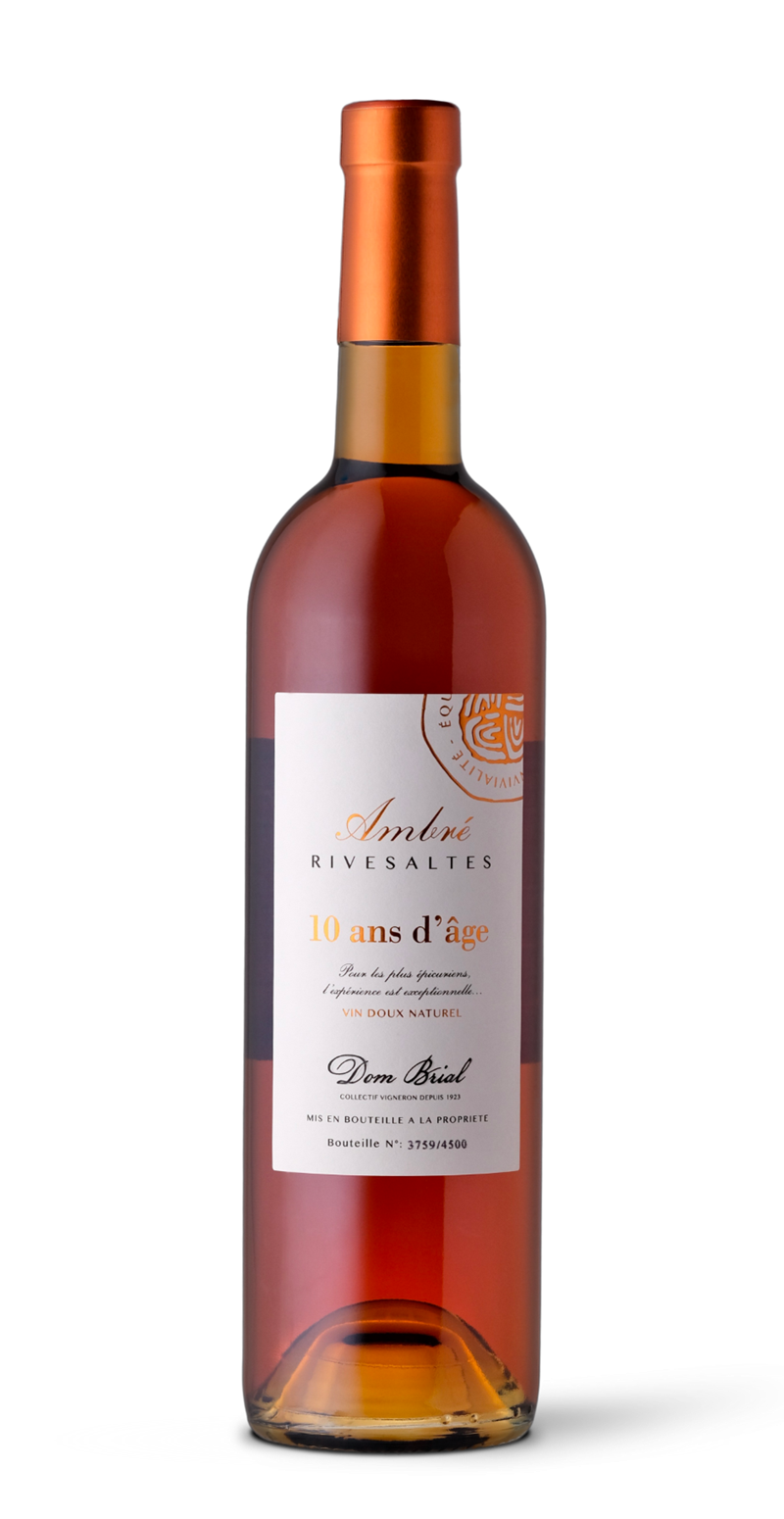 Deze ‘Vin Doux Naturel’ heeft in de neus aroma’s van honing en acacia. De smaak is vol met zuidvruchten en karamel, ook de mooie belegen tonen geven deze wijn karakter. De Rivesaltes Ambré, vervaardigd van grenache gris en grenache blanc, is een plezierige begeleider maakt van zoete desserts en bij gerijpte kazen.