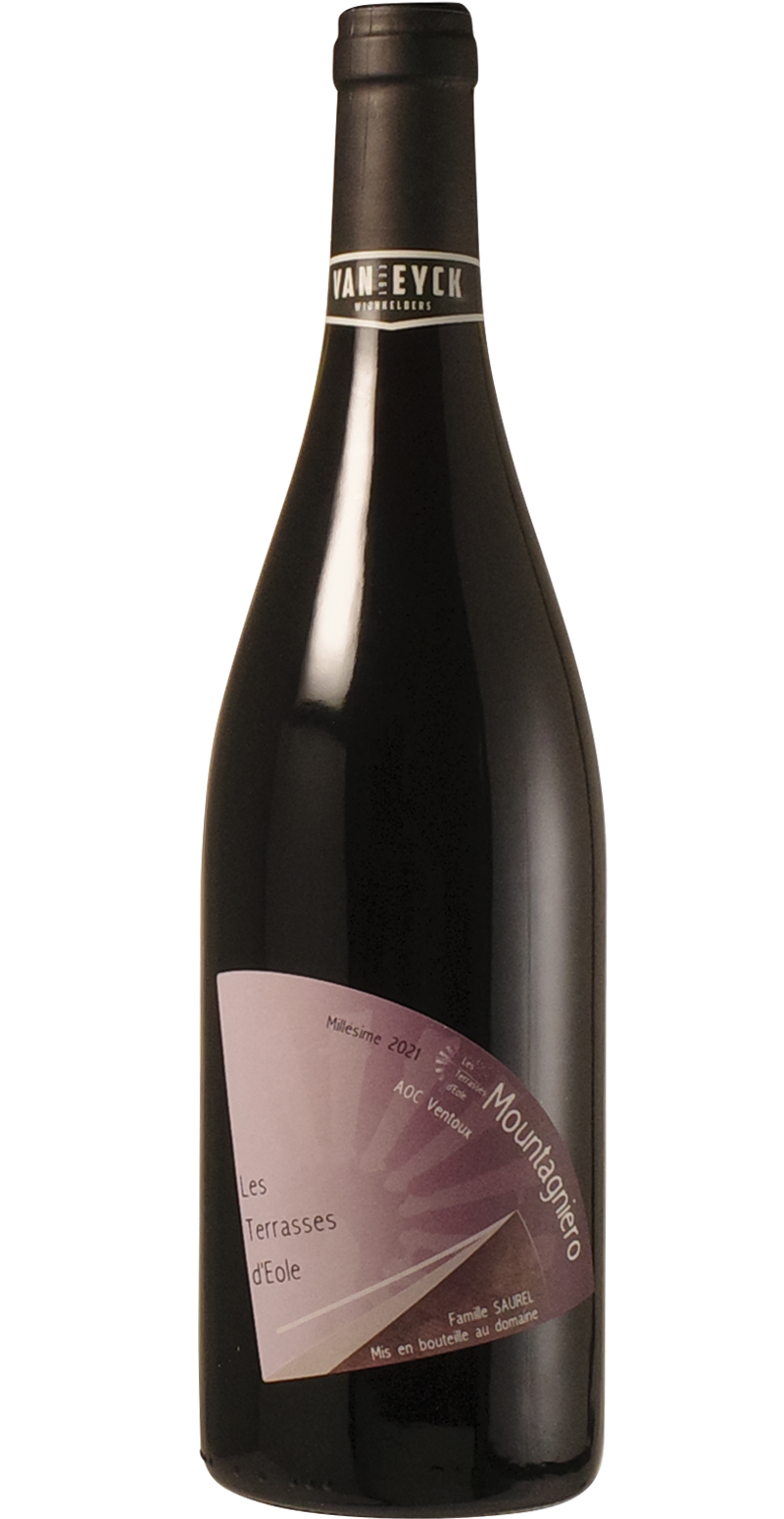 Domaine Les Terrasses d’Eole is gelegen aan de voet van de Mont Ventoux in het slaperige dorpje Mazan. Vader Claude bewerkt de wijngaarden met de grootst mogeDlijke zorg. Alleen in uiterste noodzaak wordt er gebruik gemaakt van meststoffen en bestrijdingsmiddelen. De wijngaarden zijn gelegen op diverse bodemtypen. Hoewel er steeds nieuwe aanplant plaatsvindt, bestaat het grootste deel van het domein uit stokken van 50 jaar of ouder. Zoon Stéphane zwaait de scepter in de kelder. Gedreven door een tomeloos enthousiasme verwerkt hij de druiven tot wijnen met karakter. Belangrijk is dat hierbij dat de drinkbaarheid van de wijnen een hoofdrol blijft spelen. Van alle druivenrassen die op het domein verbouwd worden, gebruikt hij steeds minimaal 2 soorten in een wijn. Dit komt de complexiteit van zijn wijnen ten goede en het resulteert in een zachte, vriendelijke stijl. Het vakmanschap van Stéphane blijkt onder andere uit de inrichting van zijn kelder. Nergens wordt er een pomp gebruikt om druiven of wijn te transporteren. Hierdoor wordt het maken van de wijn nergens geforceerd en zijn de wijnen mooi in balans.